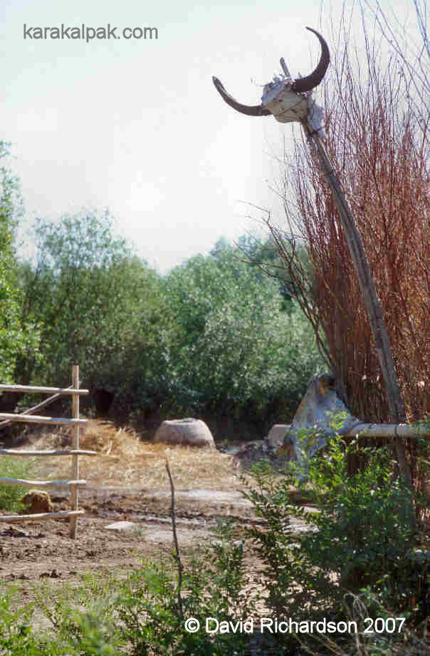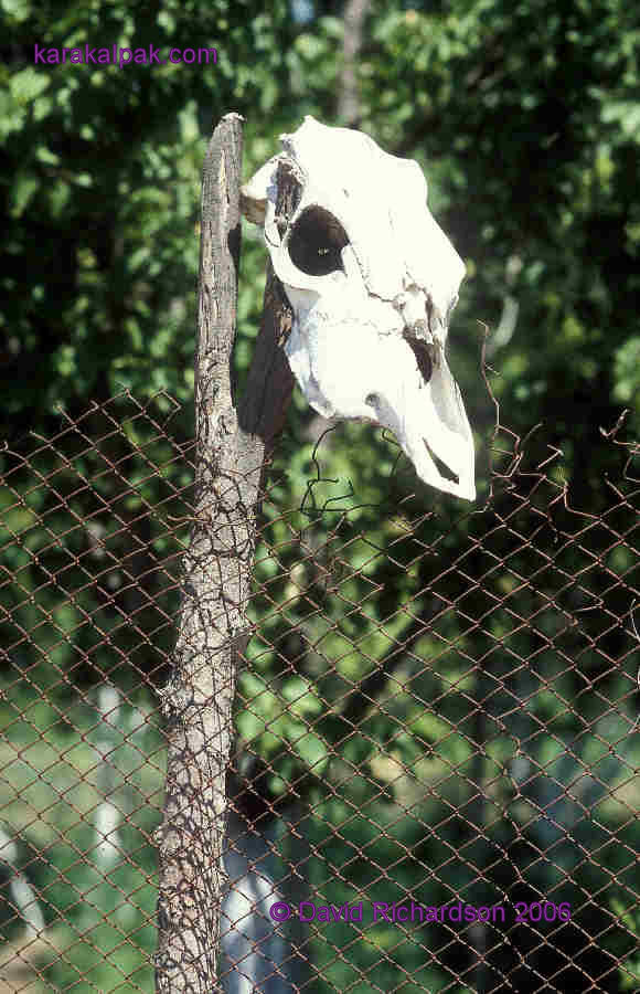 The skull of a sheep protects a farmer's field from harm, Kegeyli rayon 2005.